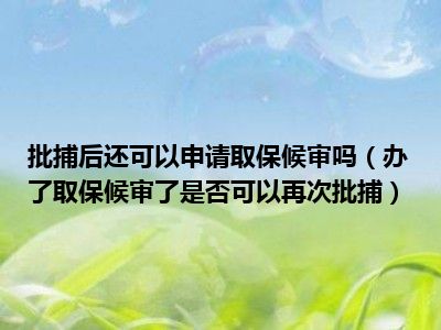 目前大家应该是对办了取保候审了是否可以再次批捕比较感兴趣的,所以今天CC就来为大家整理了一些关于办了取保候审了是否可以再次批捕方面的相关知识来分享给大家,希望大家会喜欢哦。