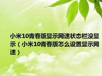 1、 小米10青春版怎么设置显示网速?