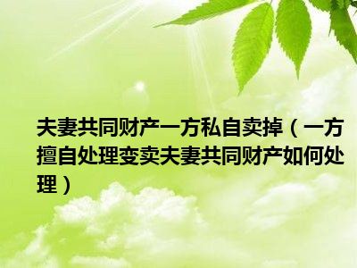 目前大家应该是对一方擅自处理变卖夫妻共同财产如何处理比较感兴趣的,所以今天CC就来为大家整理了一些关于一方擅自处理变卖夫妻共同财产如何处理方面的相关知识来分享给大家,希望大家会喜欢哦。