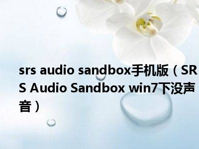 相信目前很多小伙伴对于SRS Audio Sandbox win7下没声音都比较感兴趣,那么小编今天在网上也是收集了一些与SRS Audio Sandbox win7下没声音相关的信息来分享给大家,希望能够帮助到大家哦。