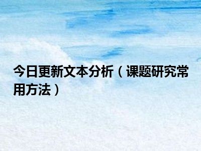 目前上述的内容应该能够为大家解答出大家对于文本分析(课题研究常用方法)的疑惑了,所以如果大家还想要了解更多的知识内容,也可以关注本站其他文章进行了解哦。