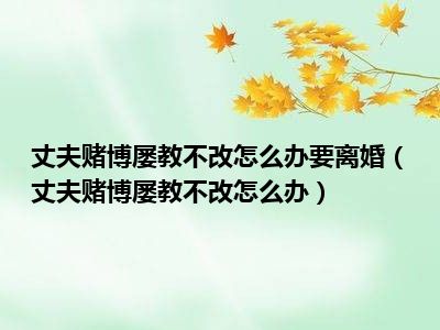目前大家应该是对丈夫赌博屡教不改怎么办比较感兴趣的,所以今天CC就来为大家整理了一些关于丈夫赌博屡教不改怎么办方面的相关知识来分享给大家,希望大家会喜欢哦。