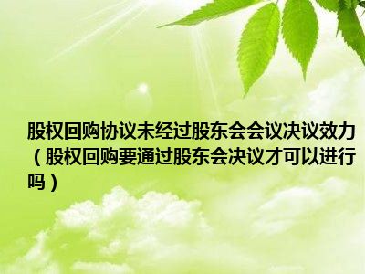 目前大家应该是对股权回购要通过股东会决议才可以进行吗比较感兴趣的,所以今天CC就来为大家整理了一些关于股权回购要通过股东会决议才可以进行吗方面的相关知识来分享给大家,希望大家会喜欢哦。