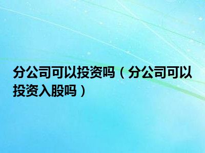 导读目前大家应该是对分公司可以投资入股吗比较感兴趣的,所以今天CC就来为大家整理了一些关于分公司可以投资入股吗方面的相关知识来分享给大家...