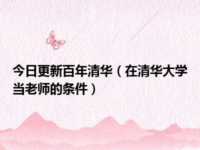 目前上述的内容应该能够为大家解答出大家对于百年清华(在清华大学当老师的条件)的疑惑了,所以如果大家还想要了解更多的知识内容,也可以关注本站其他文章进行了解哦。