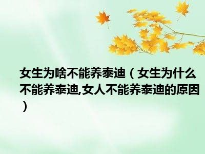 目前大家应该是对女生为什么不能养泰迪,女人不能养泰迪的原因比较感兴趣的,所以今天小编CC就来为大家整理了一些关于女生为什么不能养泰迪,女人不能养泰迪的原因方面的相关知识来分享给大家,希望大家会喜欢哦。