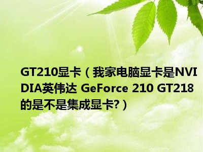 相信目前很多小伙伴对于我家电脑显卡是NVIDIA英伟达 GeForce 210 GT218的是不是集成显卡?都比较感兴趣,那么小编今天在网上也是收集了一些与我家电脑显卡是NVIDIA英伟达 GeForce 210 GT218的是不是集成显卡?相关的信息来分享给大家,希望能够帮助到大家哦。