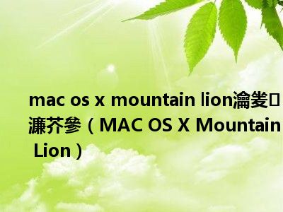 1、OS X Mountain Lion 是苹果公司2012年发布的新一代Mac OS X操作系统。