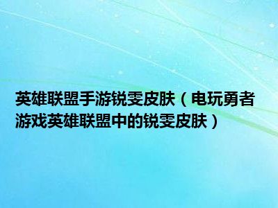 导读 目前是有很多朋友们对于电玩勇者 游戏英雄联盟中的锐雯皮肤这个信息比较感兴趣,那么小编也是收集了一些电玩勇者 游戏英雄联盟中的锐雯皮...