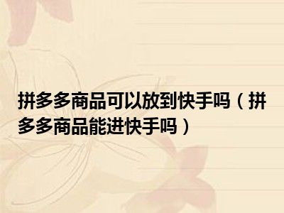 导读 1、拼多多商品能进快手吗2、拼多多的商品可以进入a auto quickless,a auto quickless已经接入了a auto quickless商品、
