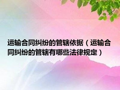目前大家应该是对运输合同纠纷的管辖有哪些法律规定比较感兴趣的,所以今天CC就来为大家整理了一些关于运输合同纠纷的管辖有哪些法律规定方面的相关知识来分享给大家,希望大家会喜欢哦。