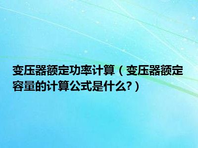 相信目前很多小伙伴对于变压器额定容量的计算公式是什么?都比较感兴趣,那么小编今天在网上也是收集了一些与变压器额定容量的计算公式是什么?相关的信息来分享给大家,希望能够帮助到大家哦。