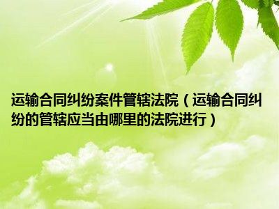 导读目前大家应该是对运输合同纠纷的管辖应当由哪里的法院进行比较感兴趣的,所以今天CC就来为大家整理了一些关于运输合同纠纷的管辖应当由哪里...