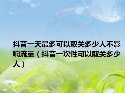 导读 1、抖音一次性可以取关多少人2、在Tik Tok,一天的用户数量没有限制。只要用户需要,随时可以查看别人。由今日头条孵化的音乐创意短视频