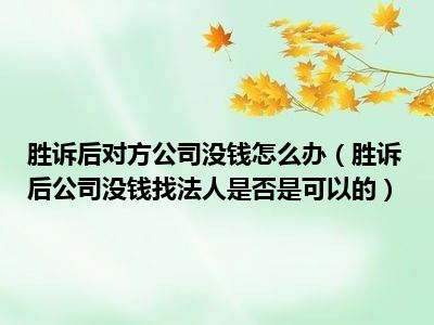 目前大家应该是对胜诉后公司没钱找法人是否是可以的比较感兴趣的,所以今天CC就来为大家整理了一些关于胜诉后公司没钱找法人是否是可以的方面的相关知识来分享给大家,希望大家会喜欢哦。