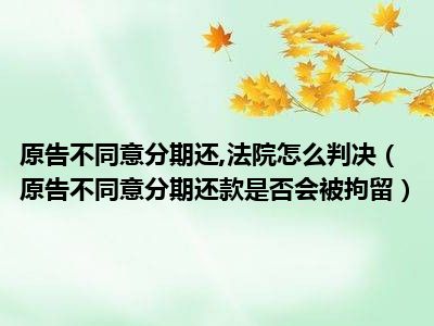 目前大家应该是对原告不同意分期还款是否会被拘留比较感兴趣的,所以今天CC就来为大家整理了一些关于原告不同意分期还款是否会被拘留方面的相关知识来分享给大家,希望大家会喜欢哦。