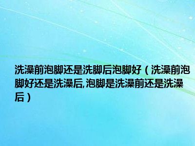 目前大家应该是对洗澡前泡脚好还是洗澡后,泡脚是洗澡前还是洗澡后比较感兴趣的,所以今天小编CC就来为大家整理了一些关于洗澡前泡脚好还是洗澡后,泡脚是洗澡前还是洗澡后方面的相关知识来分享给大家,希望大家会喜欢哦。