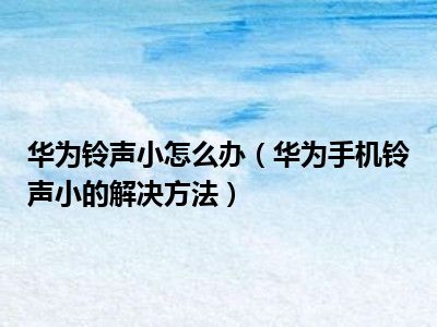 1、 华为手机铃声小的解决方法