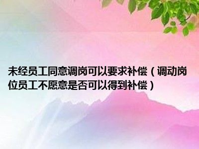 目前大家应该是对调动岗位员工不愿意是否可以得到补偿比较感兴趣的,所以今天CC就来为大家整理了一些关于调动岗位员工不愿意是否可以得到补偿方面的相关知识来分享给大家,希望大家会喜欢哦。