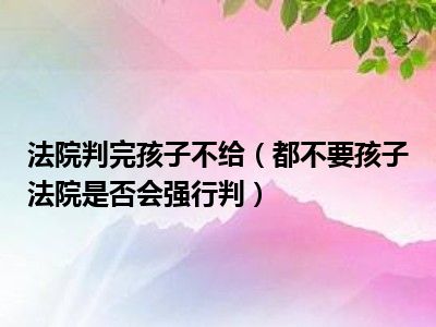 目前大家应该是对都不要孩子法院是否会强行判比较感兴趣的,所以今天CC就来为大家整理了一些关于都不要孩子法院是否会强行判方面的相关知识来分享给大家,希望大家会喜欢哦。