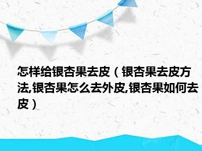 目前大家应该是对银杏果去皮方法,银杏果怎么去外皮,银杏果如何去皮比较感兴趣的,所以今天小编CC就来为大家整理了一些关于银杏果去皮方法,银杏果怎么去外皮,银杏果如何去皮方面的相关知识来分享给大家,希望大家会喜欢哦。