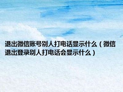 导读 1、微信退出登录别人打电话会显示什么2、微信注销登录,别人的电话会显示没人接通。您已注销,无法接收。3、微信是腾讯于2011年1月21日推出