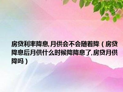 导读 目前大家应该是对房贷降息后月供什么时候降降息了,房贷月供降吗比较感兴趣的,所以今天好房网小编CC就来为大家整理了一些关于房贷降息后月
