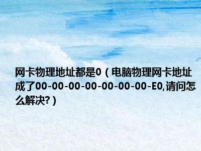 相信目前很多小伙伴对于电脑物理网卡地址成了00-00-00-00-00-00-00-E0,请问怎么解决?都比较感兴趣,那么小编今天在网上也是收集了一些与电脑物理网卡地址成了00-00-00-00-00-00-00-E0,请问怎么解决?相关的信息来分享给大家,希望能够帮助到大家哦。