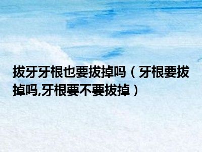 目前大家应该是对牙根要拔掉吗,牙根要不要拔掉比较感兴趣的,所以今天小编CC就来为大家整理了一些关于牙根要拔掉吗,牙根要不要拔掉方面的相关知识来分享给大家,希望大家会喜欢哦。