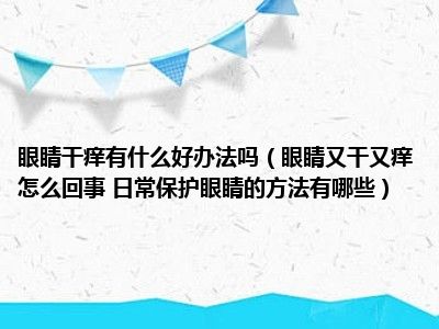 目前大家应该是对眼睛又干又痒怎么回事 日常保护眼睛的方法有哪些比较感兴趣的,所以今天小编CC就来为大家整理了一些关于眼睛又干又痒怎么回事 日常保护眼睛的方法有哪些方面的相关知识来分享给大家,希望大家会喜欢哦。