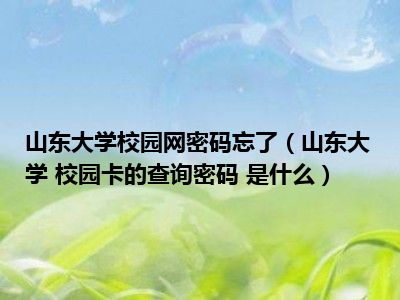 相信目前很多小伙伴对于山东大学 校园卡的查询密码 是什么都比较感兴趣,那么小编今天在网上也是收集了一些与山东大学 校园卡的查询密码 是什么相关的信息来分享给大家,希望能够帮助到大家哦。