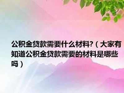 新房公积金贷款所需材料:借款人及参贷人(共同还款人、担保人)的居民身份证、户口簿原件及复印件和共同还款承诺书。 婚姻状况证明(已婚的提供结婚证复印件,其他情况由所在单位或派出所出具证明)。合法的商品房购房合同或协议。借款人及参贷人所在单位提供的个人资信证明。借款人已交付不低于30%购房款的有效凭据。有效的担保证明。办理住房公积金贷款的期房楼盘,必须是由开发商与受委托银行签订按揭协议的楼盘,借款人可通过按揭银行办理贷款手续。二手房公积金贷款所需材料:卖方身份证、户口簿复印件。房产证原件和复印件。公积金管理中心认可的评估机构出具的评估报告。公积金管理中心认可的中介机构与买卖双方签订的三方协议。区级以上房产交易部门进行抵押登记。公积金贷款指缴存住房公积金的职工享受的贷款,国家规定,凡是缴存公积金的职工均可按公积金贷款的相关规定申请公积金贷款。在本市城镇购买,建造、翻建、大修自住住房时,以其所拥有的产权住房为抵押物并作为偿还贷款的保证,即可向银行申请住房公积金贷款。公积金贷款利率:五年以下(含5年)贷款 75% 五年以上贷款 25%