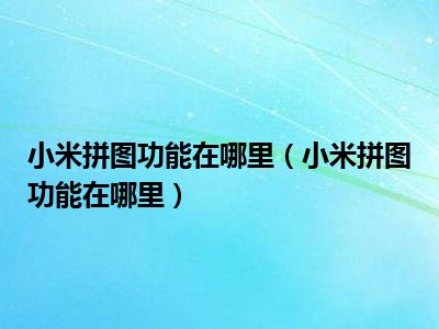 1、 小米拼图功能在哪里?