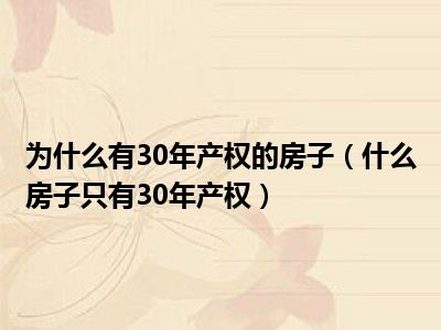导读 目前大家应该是对什么房子只有30年产权比较感兴趣的,所以今天好房网小编CC就来为大家整理了一些关于什么房子只有30年产权方面的相关知识来