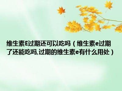 目前大家应该是对维生素e过期了还能吃吗,过期的维生素e有什么用处比较感兴趣的,所以今天小编CC就来为大家整理了一些关于维生素e过期了还能吃吗,过期的维生素e有什么用处方面的相关知识来分享给大家,希望大家会喜欢哦。