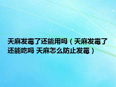 目前大家应该是对天麻发霉了还能吃吗 天麻怎么防止发霉比较感兴趣的,所以今天小编CC就来为大家整理了一些关于天麻发霉了还能吃吗 天麻怎么防止发霉方面的相关知识来分享给大家,希望大家会喜欢哦。