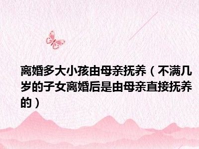 目前大家应该是对不满几岁的子女离婚后是由母亲直接抚养的比较感兴趣的,所以今天CC就来为大家整理了一些关于不满几岁的子女离婚后是由母亲直接抚养的方面的相关知识来分享给大家,希望大家会喜欢哦。