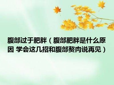 目前大家应该是对腹部肥胖是什么原因 学会这几招和腹部赘肉说再见比较感兴趣的,所以今天小编CC就来为大家整理了一些关于腹部肥胖是什么原因 学会这几招和腹部赘肉说再见方面的相关知识来分享给大家,希望大家会喜欢哦。