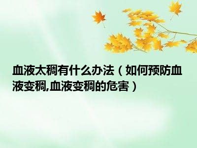 血液变稠给人体带来很大危害:可导致血流缓慢,容易形成血栓,严重的可引发心脑血管疾病;可导致血液淤滞、循环不畅、供血供氧不足,从而使人出现头昏、胸闷、心慌、气短、疲劳等症状;可损伤大血管和微循环,加速糖尿病患者并发症的发生和发展。