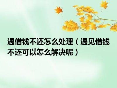 导读目前大家应该是对遇见借钱不还可以怎么解决呢比较感兴趣的,所以今天CC就来为大家整理了一些关于遇见借钱不还可以怎么解决呢方面的相关知识...