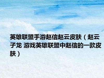 导读 目前是有很多朋友们对于赵云子龙 游戏英雄联盟中赵信的一款皮肤这个信息比较感兴趣,那么小编也是收集了一些赵云子龙 游戏英雄联盟中赵信...