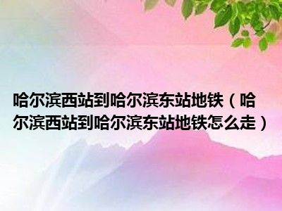 目前应该是有很多小伙伴对于哈尔滨西站到哈尔滨东站地铁怎么走方面的信息比较感兴趣,现在小编就收集了一些与哈尔滨西站到哈尔滨东站地铁怎么走相关的信息来分享给大家,感兴趣的小伙伴可以接着往下看,希望会帮助到你哦。