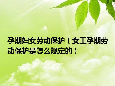 目前大家应该是对女工孕期劳动保护是怎么规定的比较感兴趣的,所以今天CC就来为大家整理了一些关于女工孕期劳动保护是怎么规定的方面的相关知识来分享给大家,希望大家会喜欢哦。