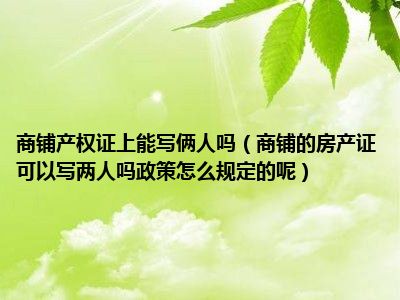 导读 目前大家应该是对商铺的房产证可以写两人吗政策怎么规定的呢比较感兴趣的,所以今天好房网小编CC就来为大家整理了一些关于商铺的房产证可以