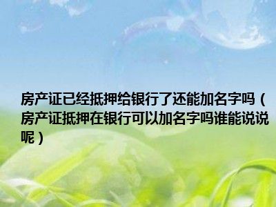 导读 目前大家应该是对房产证抵押在银行可以加名字吗谁能说说呢比较感兴趣的,所以今天好房网小编CC就来为大家整理了一些关于房产证抵押在银行可