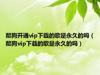 导读 1、酷狗vip下载的歌是永久的吗?2、酷狗vip下载的歌曲不是永久有效的,酷狗VIP过期后就不能听了。付费歌曲是加密的,只能在会员期内收听。3