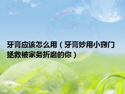 导读 目前大家应该是对牙膏妙用小窍门 拯救被家务折磨的你比较感兴趣的,所以今天小编CC就来为大家整理了一些关于牙膏妙用小窍门 拯救被家务折...