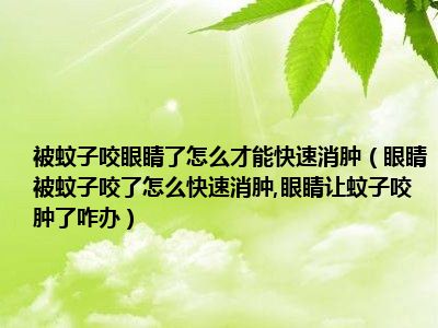 目前大家应该是对眼睛被蚊子咬了怎么快速消肿,眼睛让蚊子咬肿了咋办比较感兴趣的,所以今天小编CC就来为大家整理了一些关于眼睛被蚊子咬了怎么快速消肿,眼睛让蚊子咬肿了咋办方面的相关知识来分享给大家,希望大家会喜欢哦。