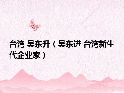 1、吴东进,台湾著名新生代企业家,台湾台北市人,台湾著名企业家吴火狮之子。