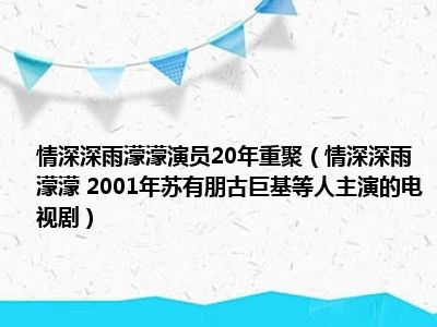 导读 目前是有很多朋友们对于情深深雨濛濛 2001年苏有朋、古巨基等人主演的电视剧这个信息比较感兴趣,那么小编也是收集了一些情深深雨濛濛 20...